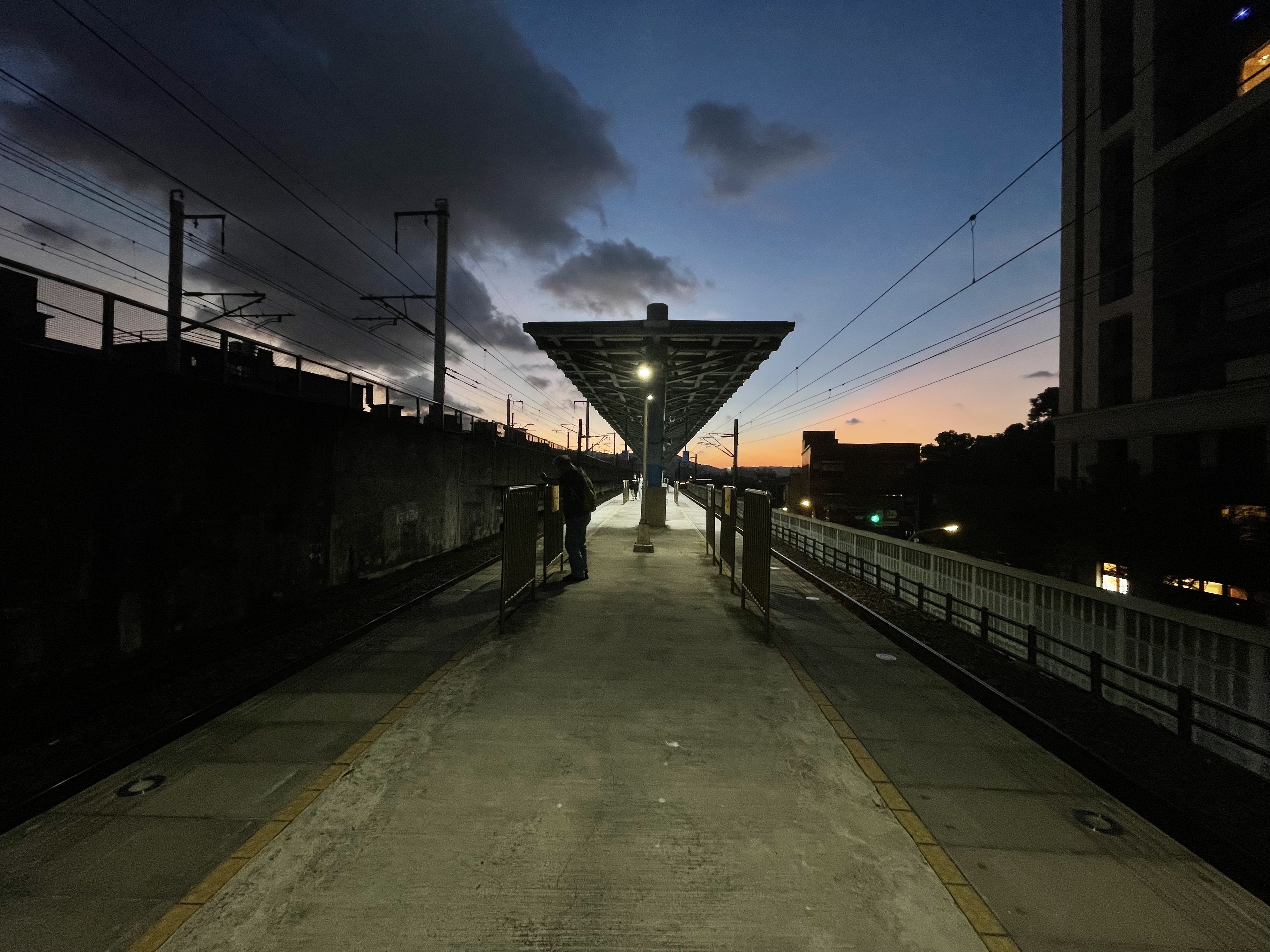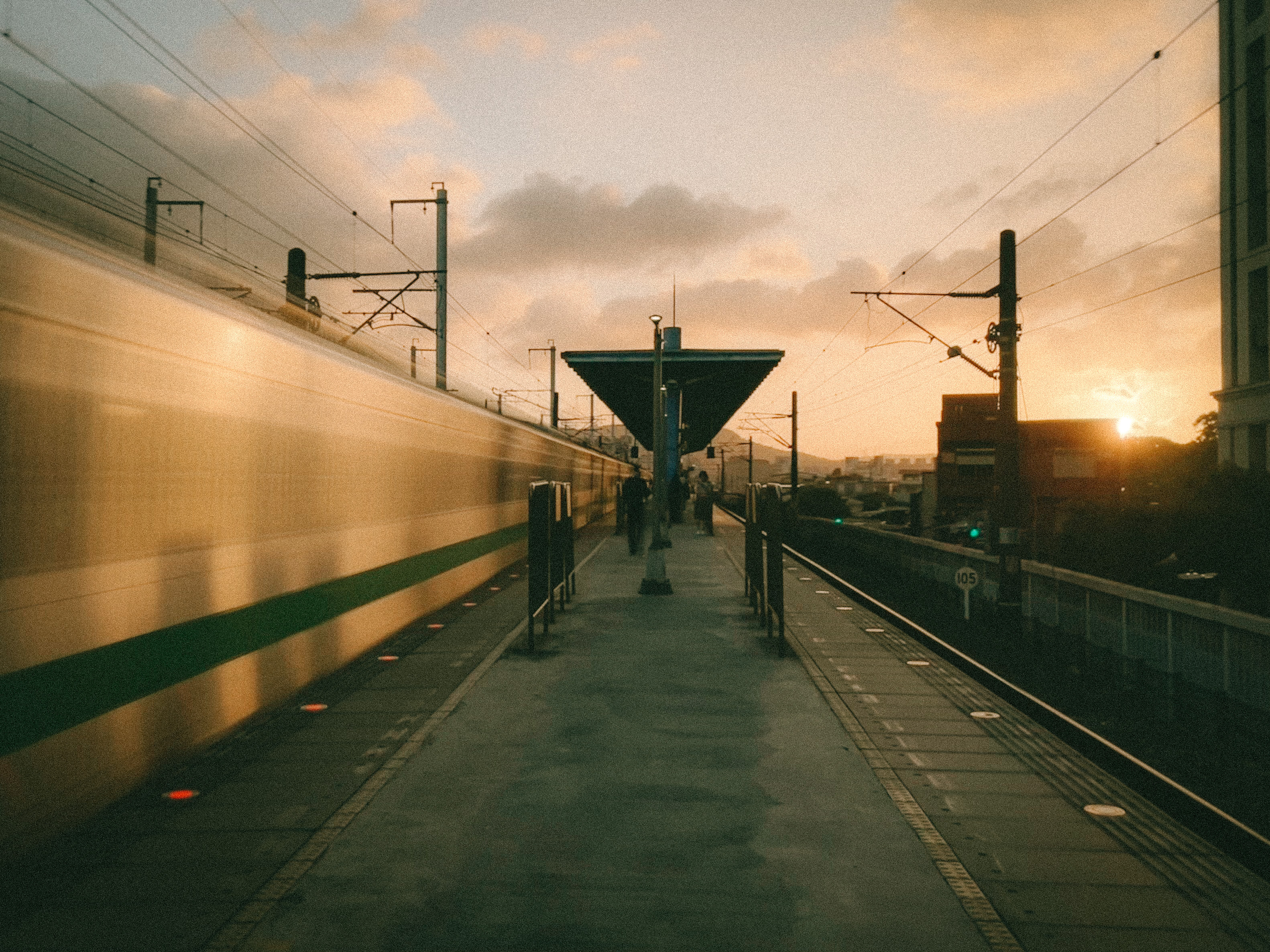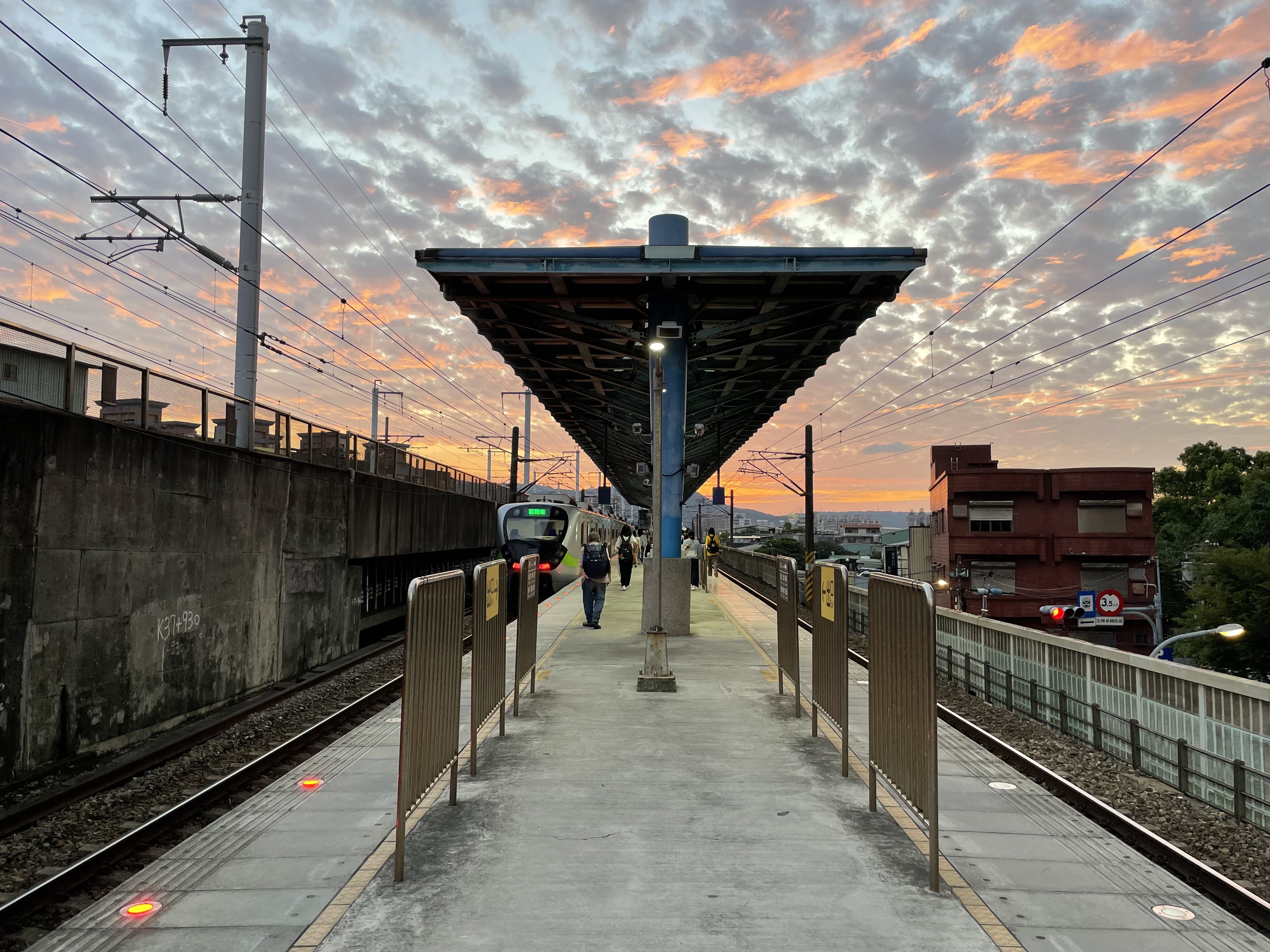 浮島岸上 閃電劃破暗紫的夜,黃昏將鐵軌染金,黎明以雲霞低語。 在這裡傾聽風聲,吸納時間的起伏,也吐露月台的孤寂與溫柔。